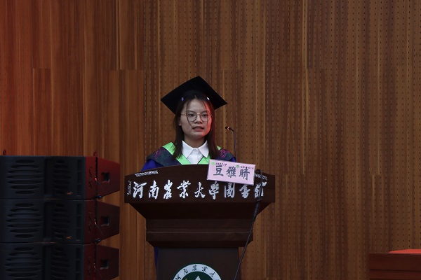 研究生毕业生代表、2021级畜牧学硕班豆雅晴发言。她回顾了在动科(包括牧医)的7年求学生涯,与大家分享收获与成长,表示将光大“团结奋进、力争上游、遵从集体、爱我动科”的投注平台