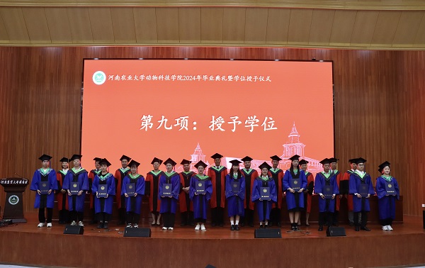 在庄严的国歌声中,毕业典礼正式拉开帷幕。副院长酒梅菊宣读《2024届优秀毕业生名单》、副院长孙宇宣读《2024届博士和硕士学位授予决定》、农大牧原联合产业研究院执行院长兼投注平台