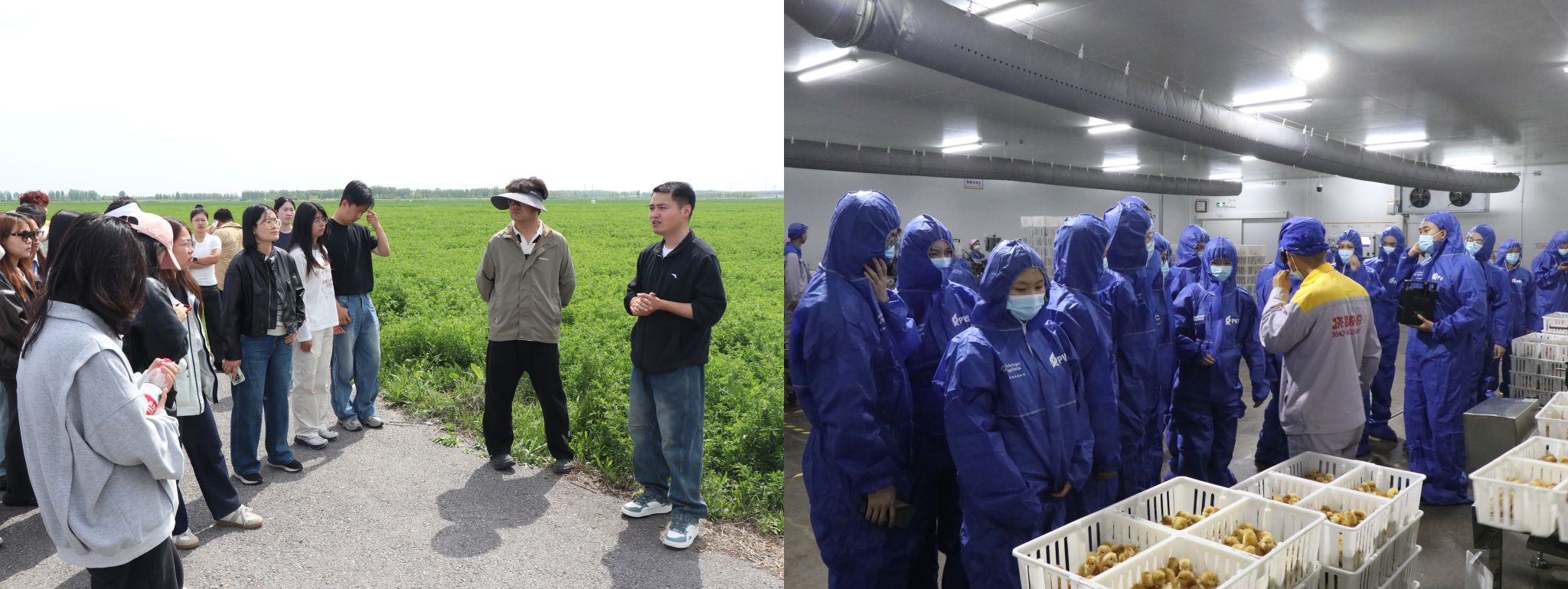 随后,师生前往晓鸣股份兰考孵化基地,沉浸式探访现代畜牧生产全流程。在种蛋分级车间,自动化检测设备精准完成重量、蛋形指数、裂纹等指标筛查,严把种源质量关;孵化大厅内,智能孵化器阵列整齐排布,温度、湿度、通风的精准调控原理及定时翻蛋技术现场科普,直观展现畜牧养殖的科技内核;出雏环节中,雏鸡经自动化流水线完成鉴别、免疫、断喙等工序,全链条智能化生产让新生对现代畜牧业有了具象化认知。